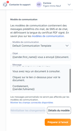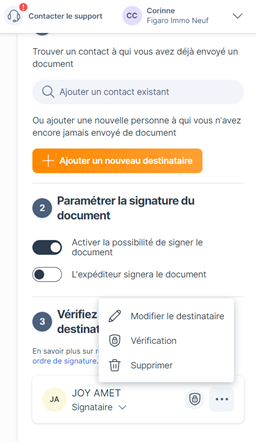 Sur la droite dans le menu déroulant, vérifier l’adresse mail du signataire