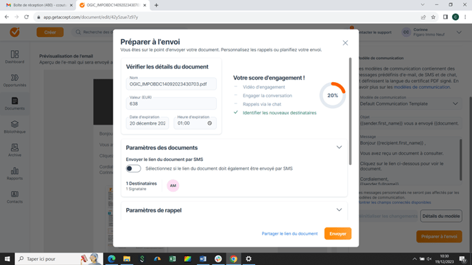 Copier le lien et l’envoyer dans un mail au client afin qu’il puisse signer le BDC.