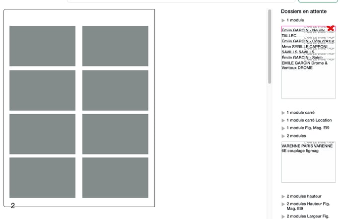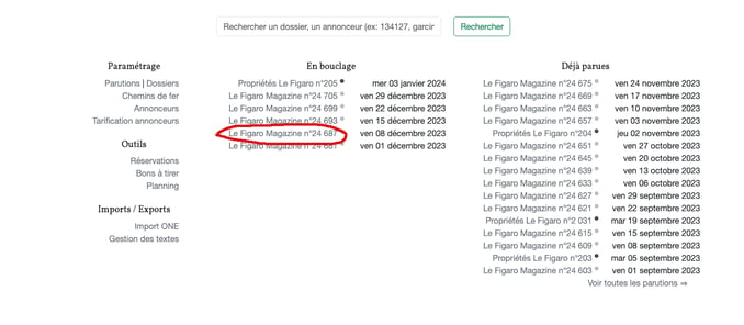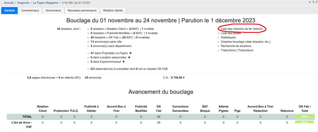 Une fois que quelques dossiers sont créés dans Publish, vous pouvez créer un chemin de fer. Le chemin de fer ou CDF représente le positionnement virtuel des annonces dans les pages du Figaro Magazine. Ainsi, vous pouvez choisir de mettre une annonce en recto, une autre en verso ou les annonces d'un même client ensemble.