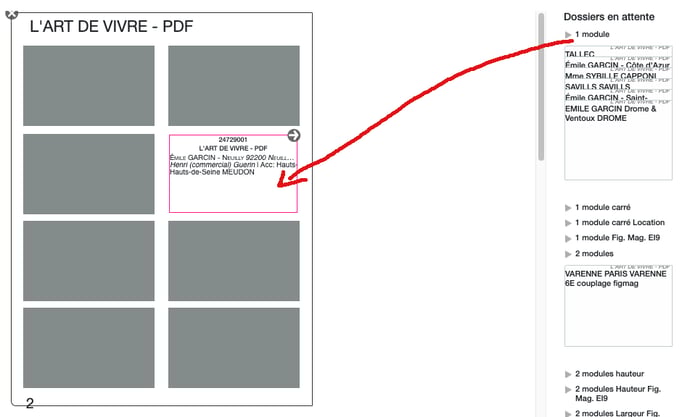Ça fonctionne de la même façon à partir de la zone "dossiers en attente". Il faut saisir dans la liste l'annonce qui vous intéresse et la glisser dans l'emplacement voulu.