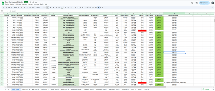 Étape 5 : Renseigner tableau partagé "Suivi campagnes digitales" (récapitulatif des campagnes passées, en cours et à venir).