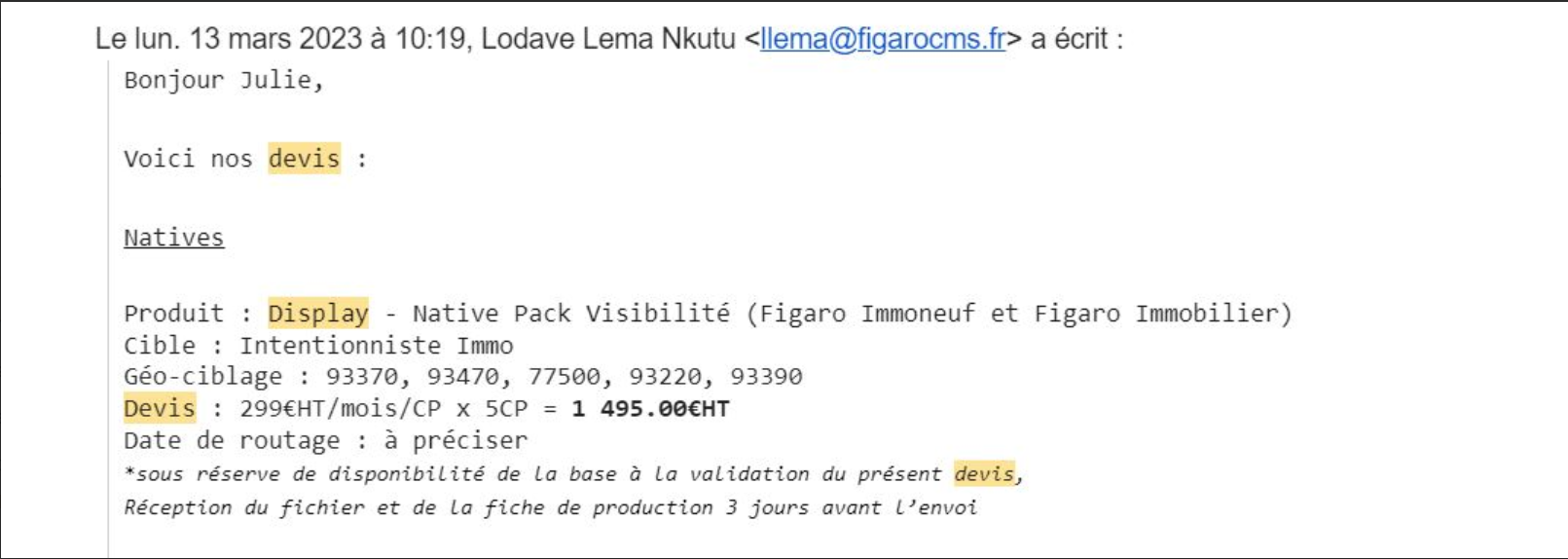 Dans le cadre d'un envoi de devis pour des clients FI9