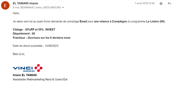 Pour la rédaction des devis e-mailing, les comptages se font via l'outil de gestion des campagnes marketing Néolane.