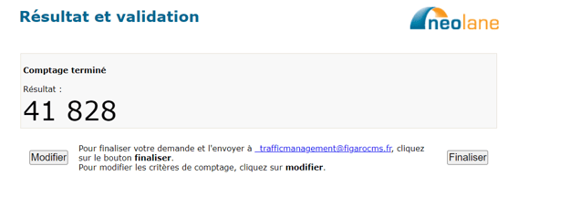 Au résultat, valider le comptage en cliquant sur "Finaliser"