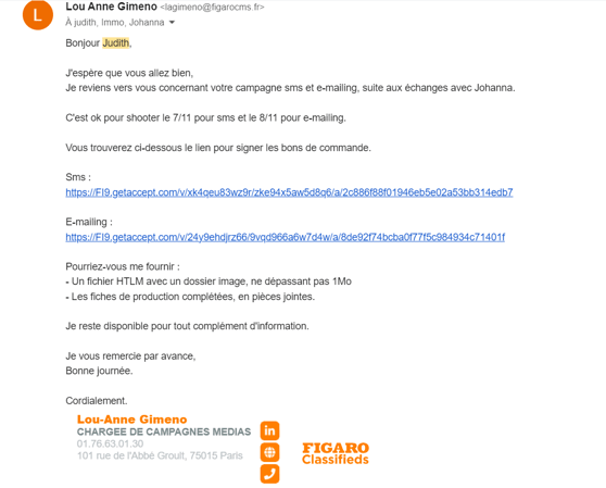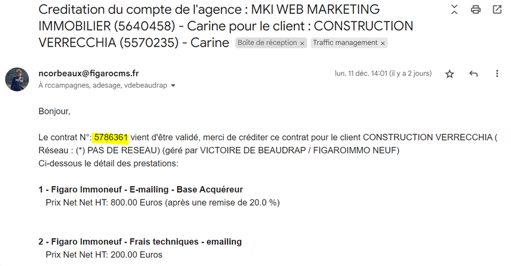Après vérification de la conformité des éléments reçus, envoyer le kit-emailing et la fiche de production à l'équipe Traffic à l'adresse _trafficmanagement@figarocms.fr, CC rccampagnes@figarocms.fr et le commercial concerné.
