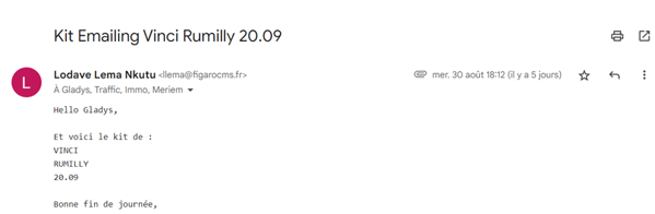 En objet du mail, indiquer : Kit e-mailing_Nom du client_nom deu programme_date d'envoi