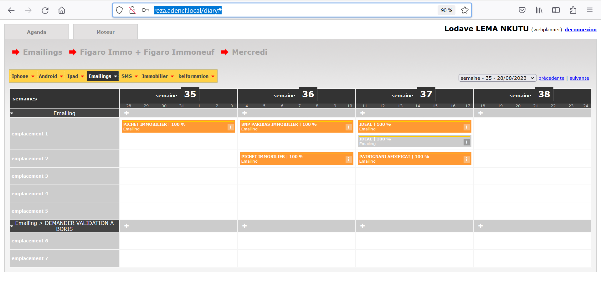 Sélectionner "Emailings", ensuite la base "Figaro Immo + Figaro Immoneuf" puis le jour de la semaine