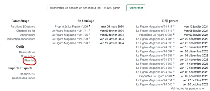 Rendez-vous sur l'adresse : https://publish.figarocms.fr/planning/ ou sur la page d'accueil de PUBLISH : https://publish.figarocms.fr/