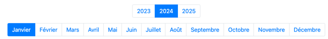 Au-dessus du planning, les différents mois apparaissent pour naviguer à travers les différentes éditions passées (1 an avant) et à venir.