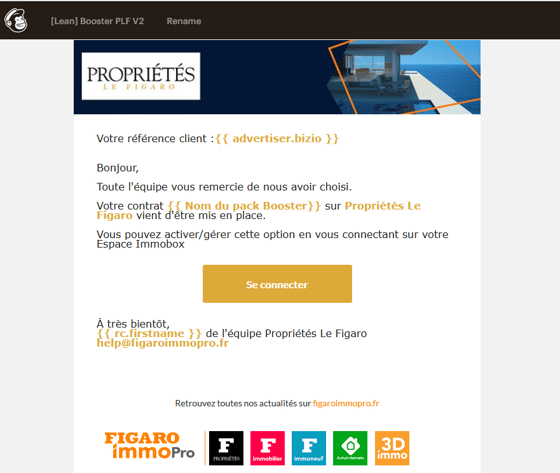 Le client reçoit ce mail d'embarquement qui reprend le volume de Boosters achetés.