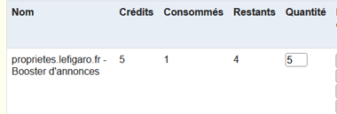Dans Immobox, la quantité s’intègre en fonction du pack acheté.