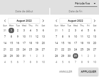 1 : On utilise le calendrier pour sélectionner la période souhaitée