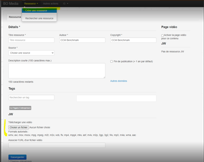 Se connecter d'abord au BO média : https://media.ccmbg.com/bo