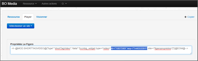 Choisir site Propriétés Le Figaro. Récupérer n° ID et n°Key