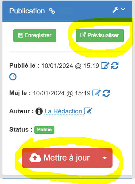Ne pas oublier de Prévisualiser de temps en temps et enfin de Publier avec le bouton "Mettre à jour".