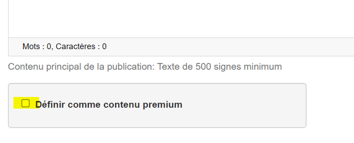Dans un premier temps, il faut commencer par cocher la case "Définir comme contenu premium" qui se trouve sous le contenu de la publication.
