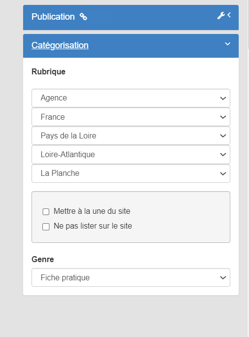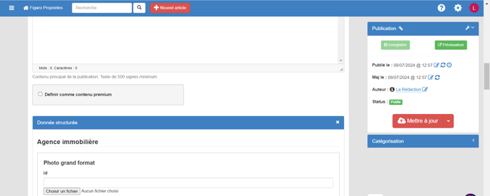 Pour enrichir les rubriques aller dans le bloc Donnée structurée juste en bas.