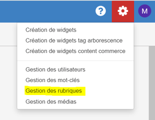 - Aller dans la roue crantée (Paramètres) / Gestion des rubriques