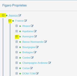 - Cliquer sur Agence / France / Région concernée / Département concerné