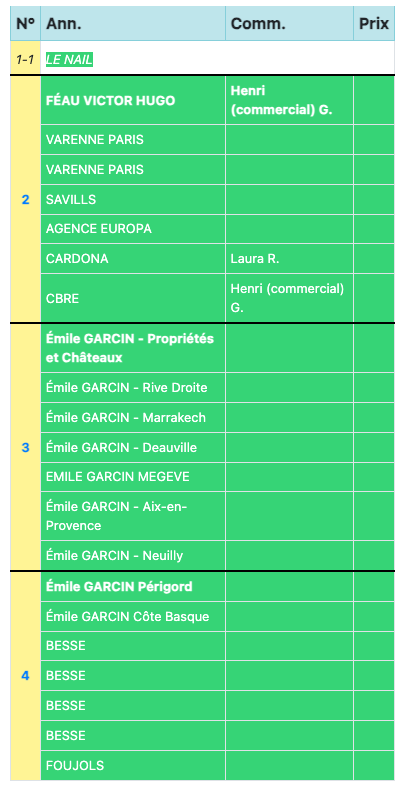 1- toutes les colonnes du numéro précédent sont colorées en vert :